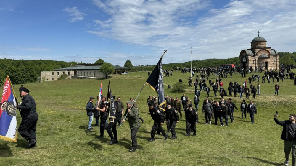 Në hapësirën e pastruar mes kishës dhe pyllit, qindra të mbledhur me uniforma të zeza nisin përkujtimin e tyre shumëditor të tubimit të ushtrisë së mundur çetnike në Luftën e Dytë Botërore. Në uniformat e ushtrisë jugosllave në atdhe të udhëhequr nga Dragoljub Drazha Mihailoviq, një udhëheqës çetnik i dënuar me vdekje në vitin 1946 për tradhti të lartë dhe bashkëpunim me Gjermaninë naziste, të mbledhurit këndojnë himnin çetnik, të rreshtuar para priftërinjve serbë.