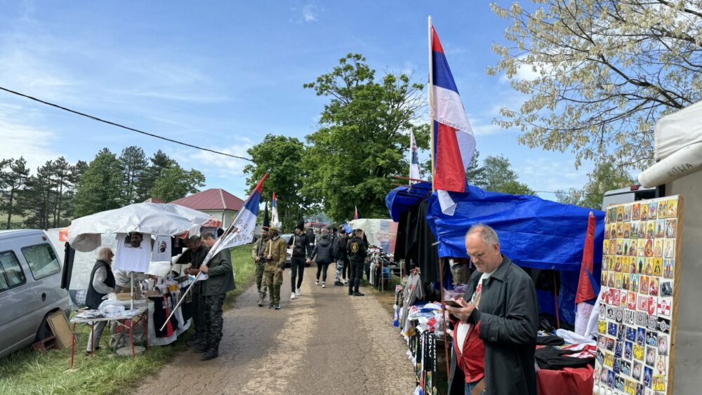 Rrugës për në tendë, shitës të shumtë shfaqin në stendat e tyre copa të ndryshme veshjesh me shkronjën Z, një simbol i pushtimit rus të Ukrainës. Përveç këtyre simboleve, oferta përfshin edhe bluza me imazhet e presidentit rus Vladimir Putin, Drazha Mihailoviq, si dhe Ratko Mlladiq, ish-komandant i Ushtrisë së Republikës Srpska (VRS) i dënuar me burgim të përjetshëm për gjenocidi në Srebrenicë, persekutimi i boshnjakëve dhe kroatëve, terrorizimi i qytetarëve të Sarajevës dhe marrja peng e anëtarëve të UNPROFOR-it.