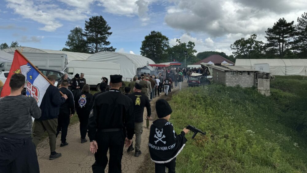 Disa prej tyre mbajnë edhe flamuj të Serbisë, të veshur me uniforma të zeza ose jeshile ulliri, me çizme në këmbë, e disa kanë thika dhe bajoneta të varura në brez. Siç ishte paralajmëruar edhe më parë nga organizatorët e takimit, bëhet fjalë për anëtarë të lëvizjes Ravnogorsk dhe Çetnike nga “të gjitha vendet serbe”.