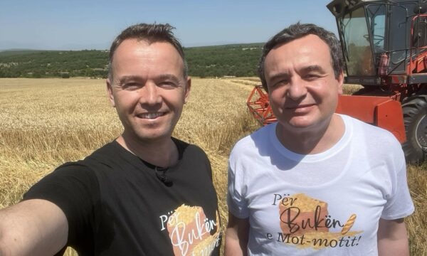 Ministri i Bujqësisë, Faton Peci, ka publikuar një fotografi me kryeministrin Albin Kurti, nga një arë me grurë.