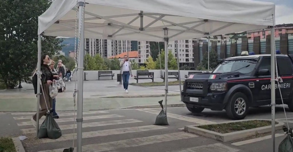 Teksa incizoheshin nga Aleksander Aresnijeviq, ato iu janë afruar karabinierëve italianë dhe kanë filluar t’ua hedhin edhe mbi makinë.
