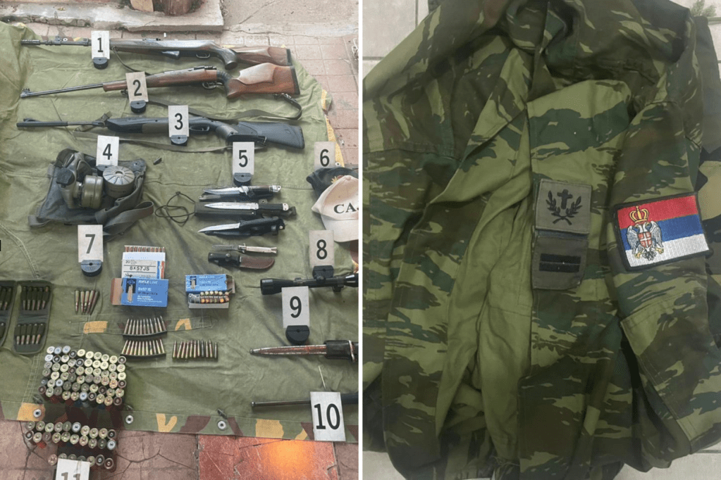 Një person është arrestuar në një fshat të Leposaviqit, pasi që me vete kishte një pushkë gjuetie me municion. Ndërsa gjatë kontrollit në shtëpinë e të dyshuarit, janë gjetur armë, fishekë si dhe xhaketë e pajisje tjera ushtarake.